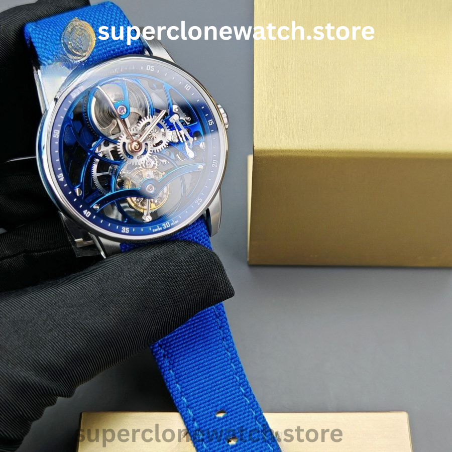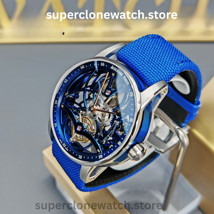 The Audemars Piguet Code 11.59 Tourbillon Openworked Ref. 26600NB Super Clone showcases an advanced architectural case design paired with a dramatic openworked tourbillon movement. Its distinctive two-tone, multi-layer case structure is complemented by the iconic double-curved sapphire crystal, creating a striking sense of depth and visual sophistication.
