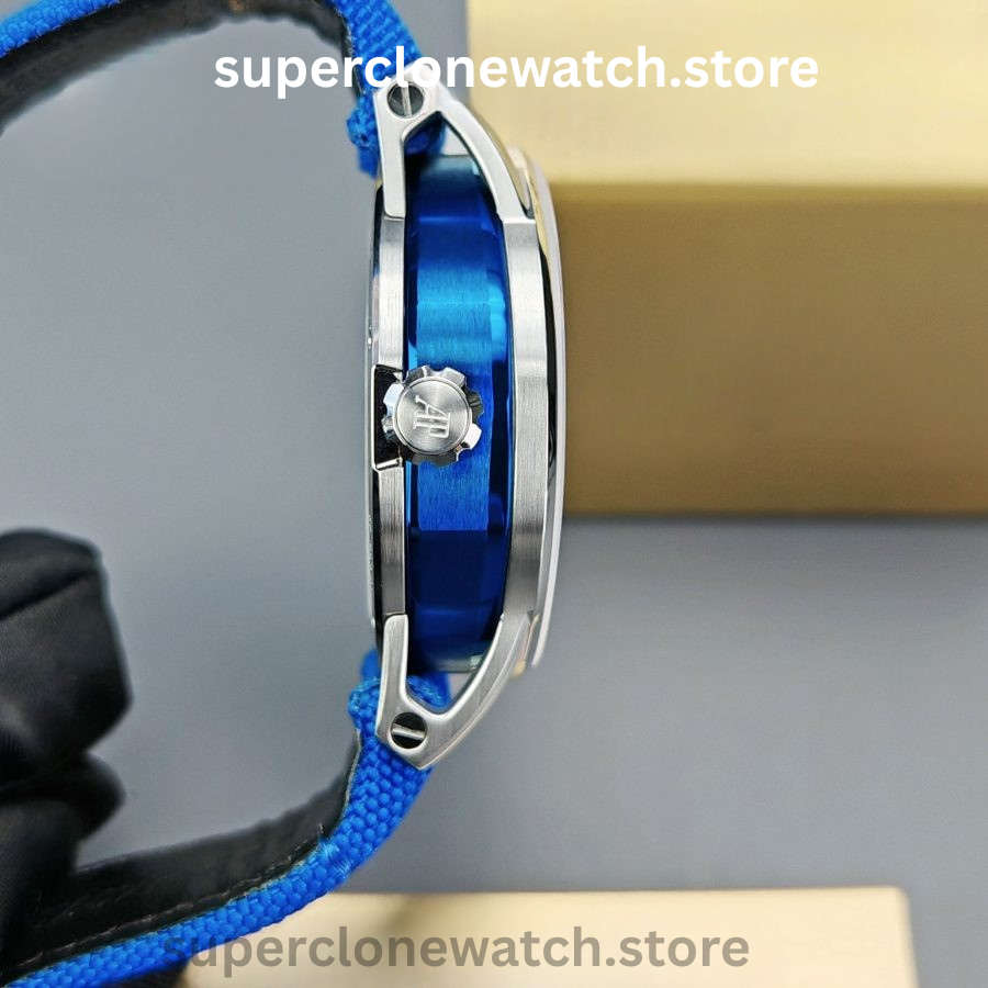 Inspired by Audemars Piguet’s design language, the octagonal case middle is finished with pronounced brushing and refined polished chamfers for contrast.
