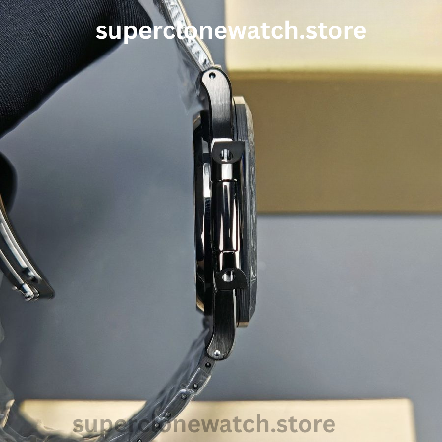 The Modified DiW Patek Philippe Nautilus 5711 Carbon Black Super Clone delivers a bold reinterpretation of the iconic 5711. Renowned for its innovative watch customizations, DiW (Designa Individual Watches) transforms the classic Nautilus by introducing high-grade carbon fiber, creating a striking new visual identity and an enhanced tactile experience that has captured the attention of modern collectors.
