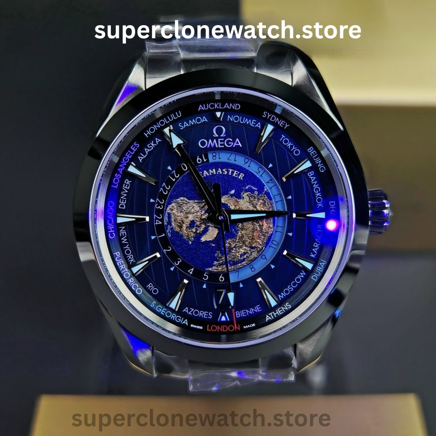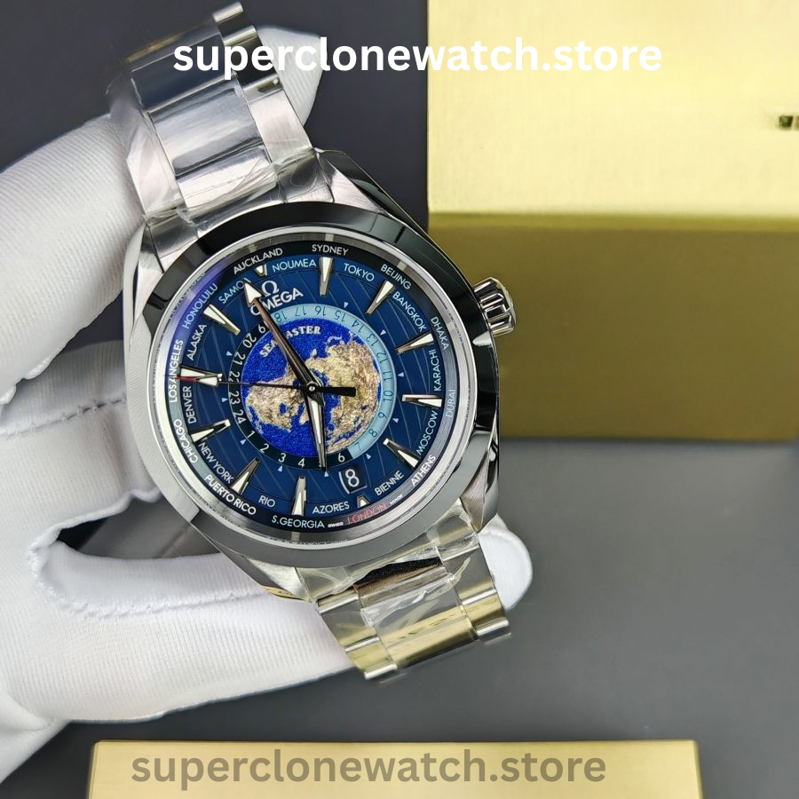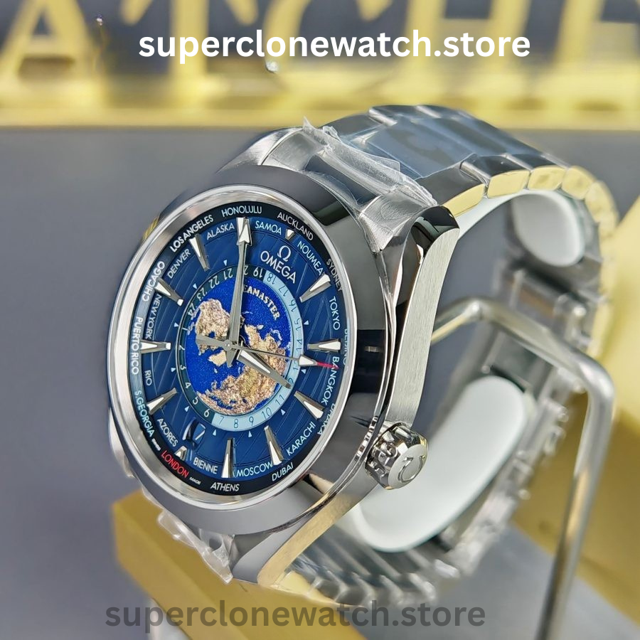 VSF is widely regarded as the benchmark factory for Omega replicas. This Aqua Terra Worldtimer stands out for its correct case proportions, refined finishing, and accurate movement architecture.