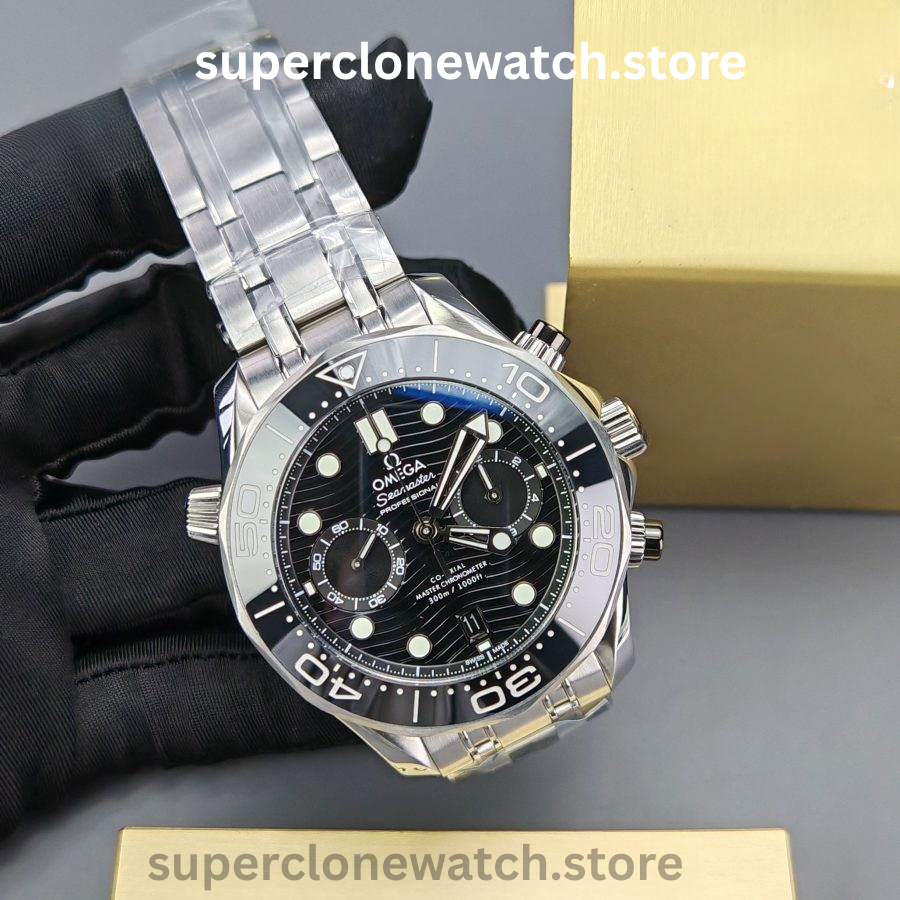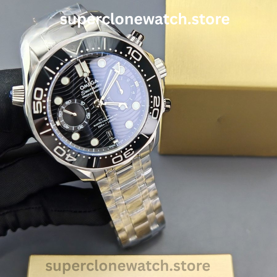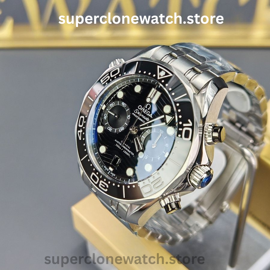 The VSF Seamaster Diver 300M Chronograph represents the highest standard of modern super-clone engineering. Designed around the Clone Calibre 9900, this model delivers true chronograph functionality, premium ceramic components, and accurate proportions that closely mirror the genuine Seamaster Chronograph reference.