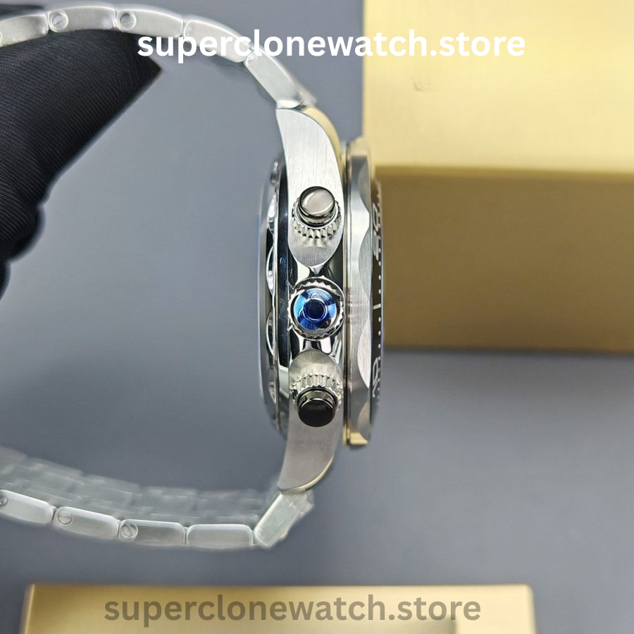 • Clone Calibre 9900 Movement: Fully operational chronograph featuring a dual-hand sub-dial positioned at 3 o’clock for precise timing functions.