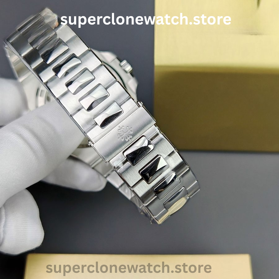 The 3KF Nautilus 5711/1300A Green Dial represents one of the most refined ultra-thin sports watch replicas available. Built with the legendary Super Clone Calibre 324 SC, this model achieves the exact slim profile, correct proportions, and authentic dial execution expected from a true 1:1 Super Clone. The factory-set diamond bezel adds a luxurious contrast while maintaining original geometry and finishing accuracy.