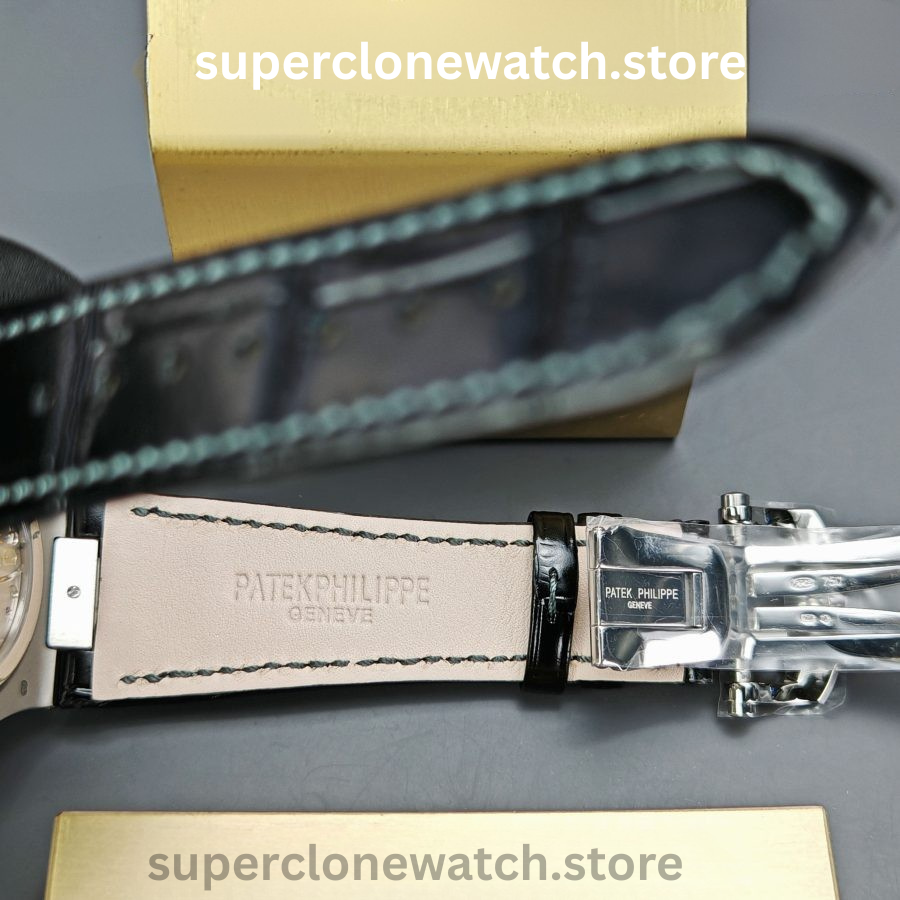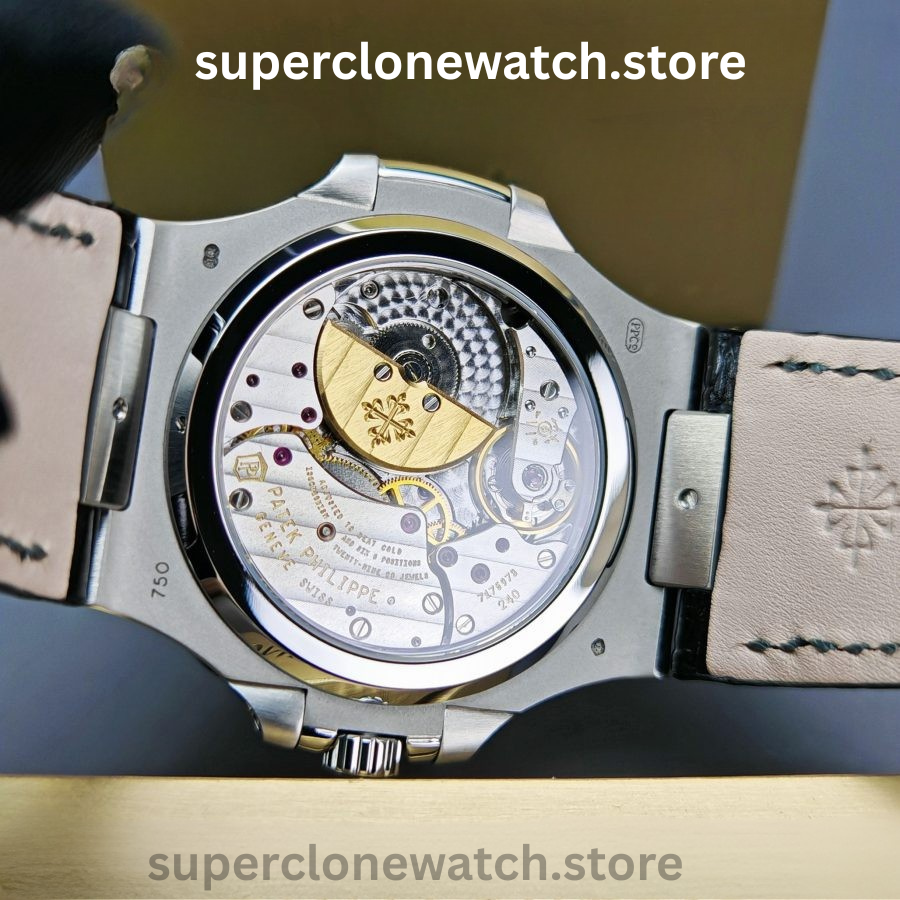 Powering the watch is the Clone Patek Philippe Calibre 240 PS automatic movement, operating at 21,600 vibrations per hour. This self-winding mechanical movement delivers reliable performance with an approximate 48-hour power reserve, faithfully replicating the functionality and feel of the genuine timepiece.