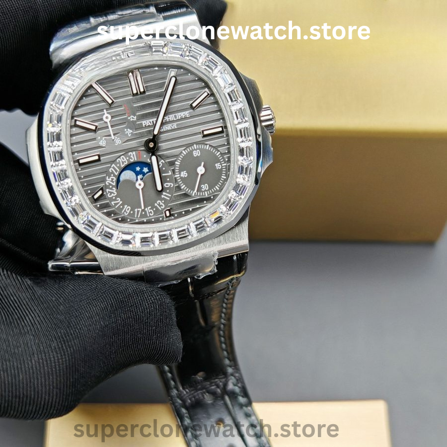 This Super Clone Patek Philippe Nautilus 5712 is crafted with such precision that distinguishing it from the genuine watch is virtually impossible. When placed side by side with the original, even experienced collectors will find it extremely difficult to tell which is authentic and which is the clone.