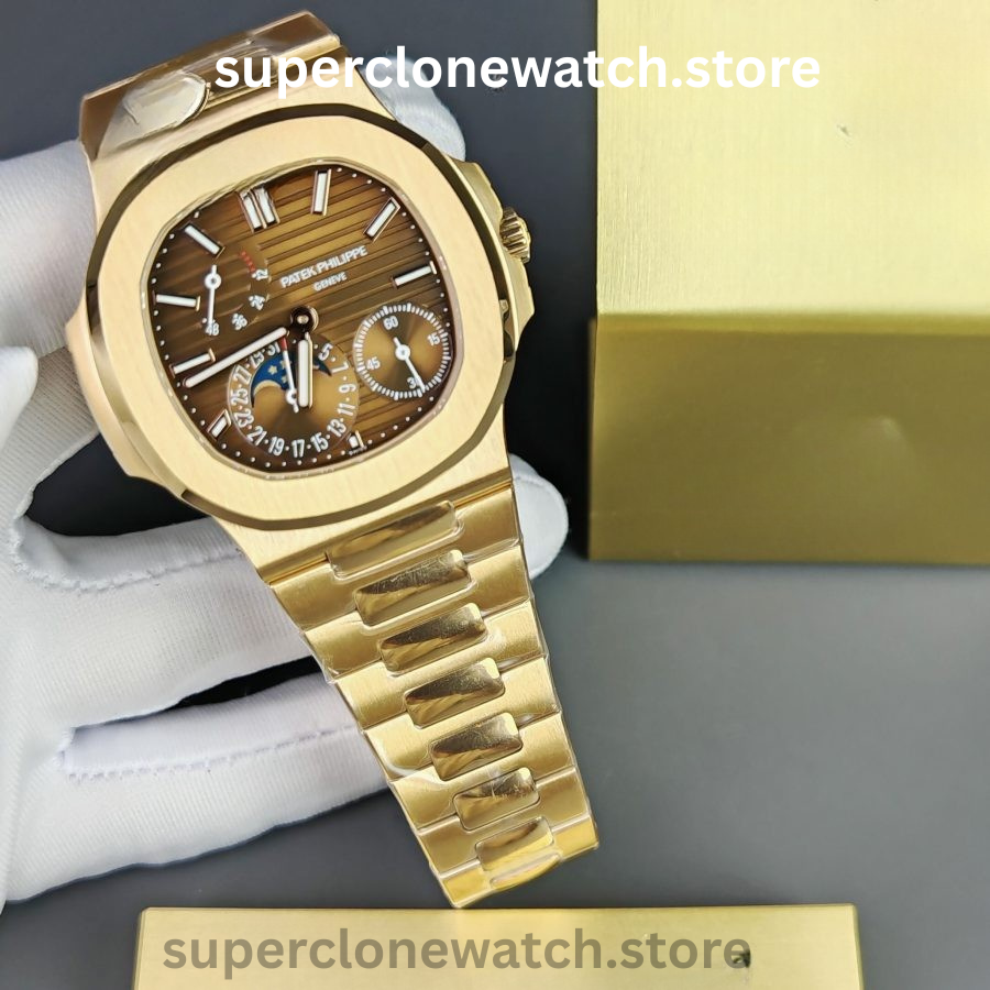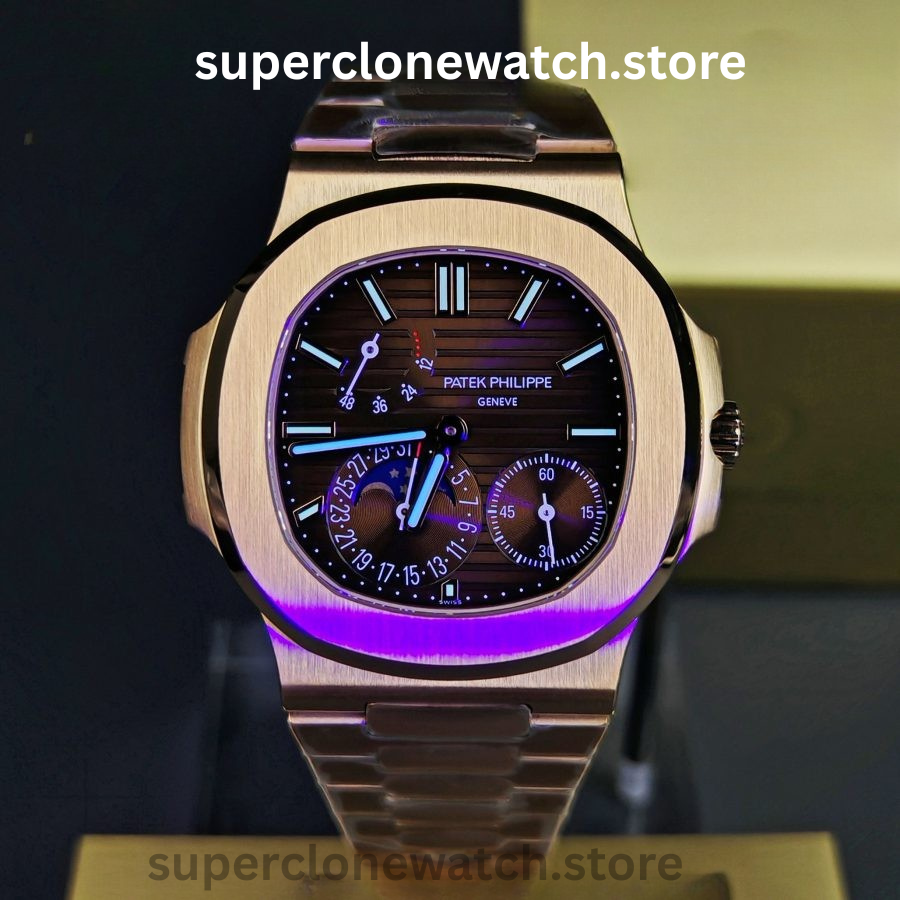 Designed for collectors who demand correctness, this model faithfully reproduces the genuine watch’s asymmetrical dial layout, power reserve display, and moonphase complication—making it one of the most technically complete Nautilus replicas available.
