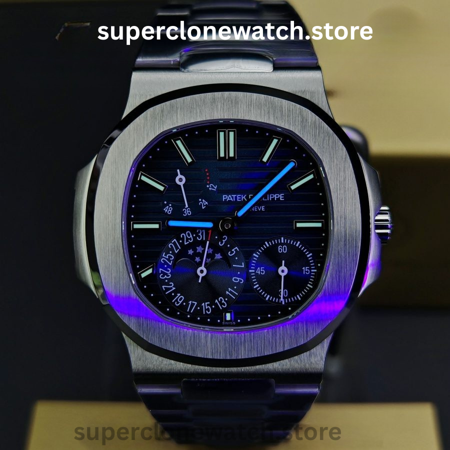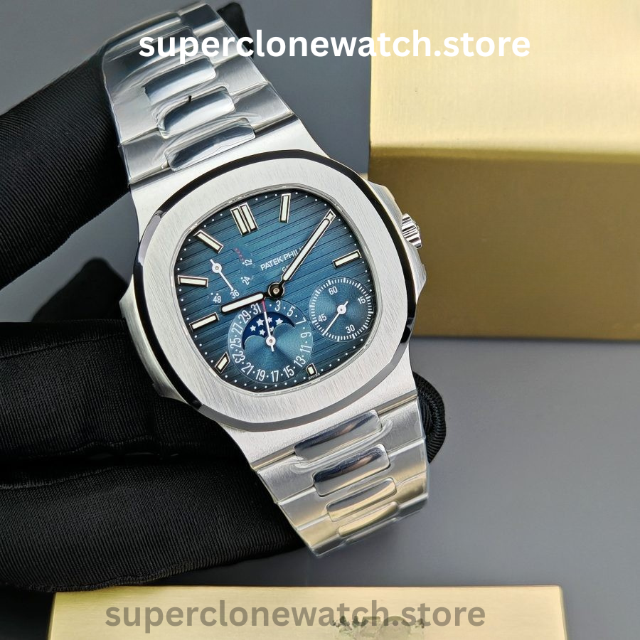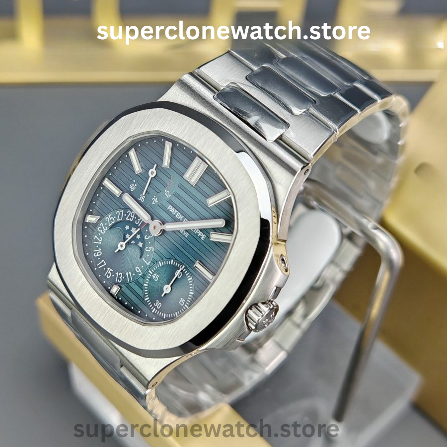 The PPF Nautilus 5712/1A Moonphase represents the most accurate ultra-thin replica of this iconic complication watch. Built around the legendary Super Clone Calibre 240 micro-rotor movement, this edition delivers authentic functionality, refined finishing, and a newly upgraded clasp for enhanced comfort and usability.