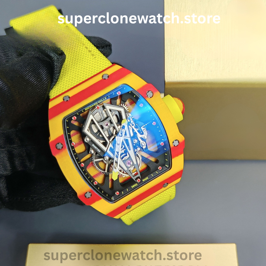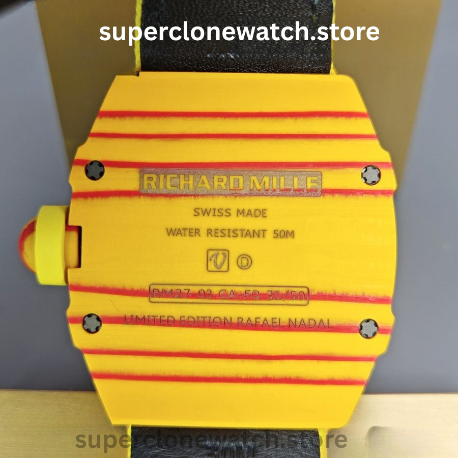 The Richard Mille RM 027-03 Rafael Nadal Super Clone is powered by the RM27-03 tourbillon movement, fully integrated into an ultra-light NTPT carbon fiber case engineered for extreme performance.