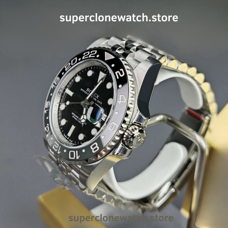 This model is driven by the Dandong DD3285, the most advanced GMT clone movement available. Unlike modified movements, this caliber offers a true independent jumping hour hand, enabling seamless time zone adjustment without stopping the seconds or minute hand—just like the genuine Rolex GMT-Master II.