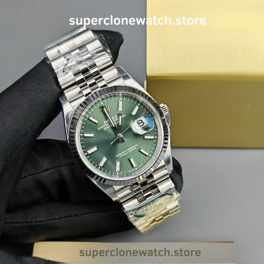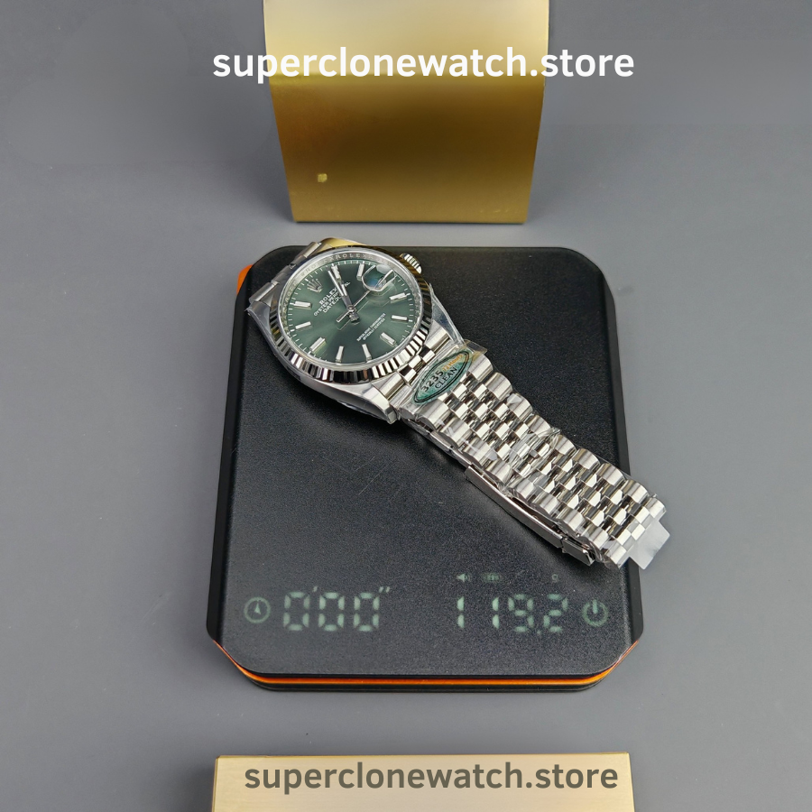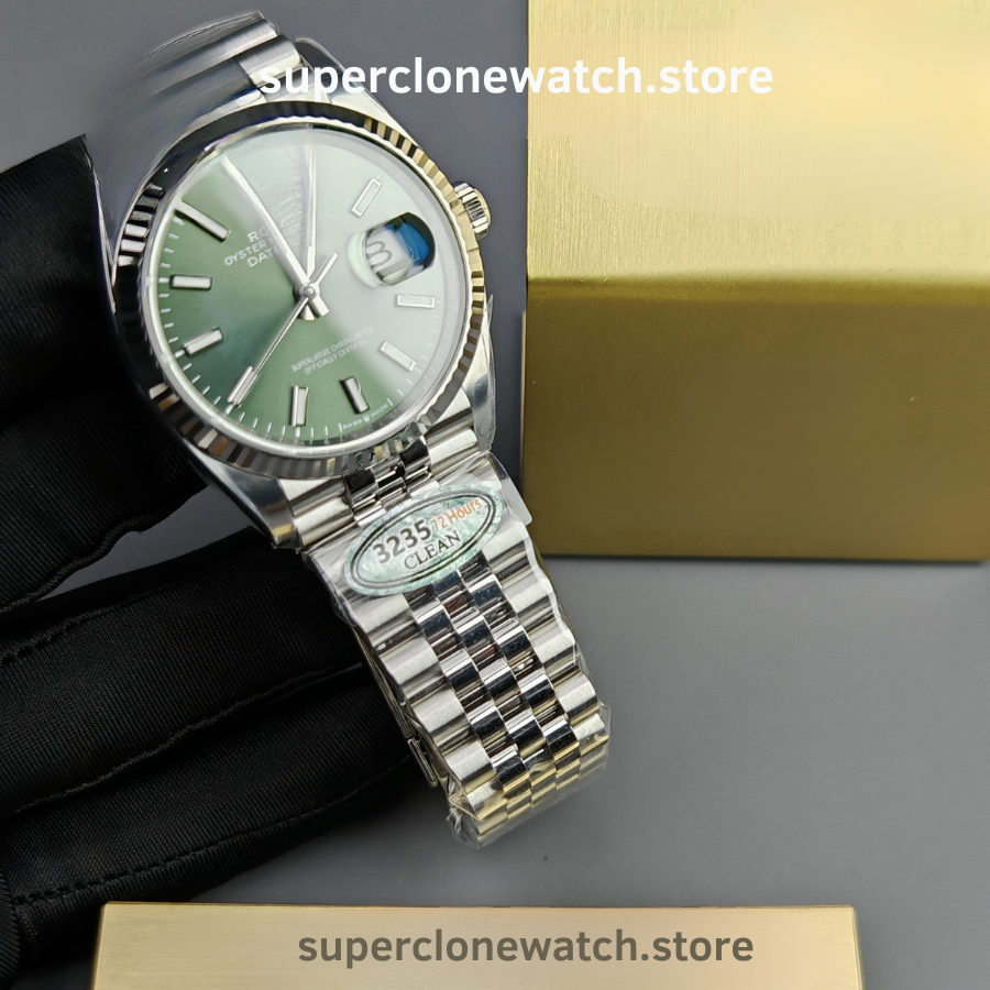 The Rolex DateJust 36mm Mint Green VSF Edition (Ref. 126234) represents one of the most accurate super clone interpretations available today. Built to exacting standards, this model features the VS3235 super clone movement, an authentic 11.7mm case thickness, and a perfectly matched mint green sunburst dial that reflects the original’s elegance and depth.