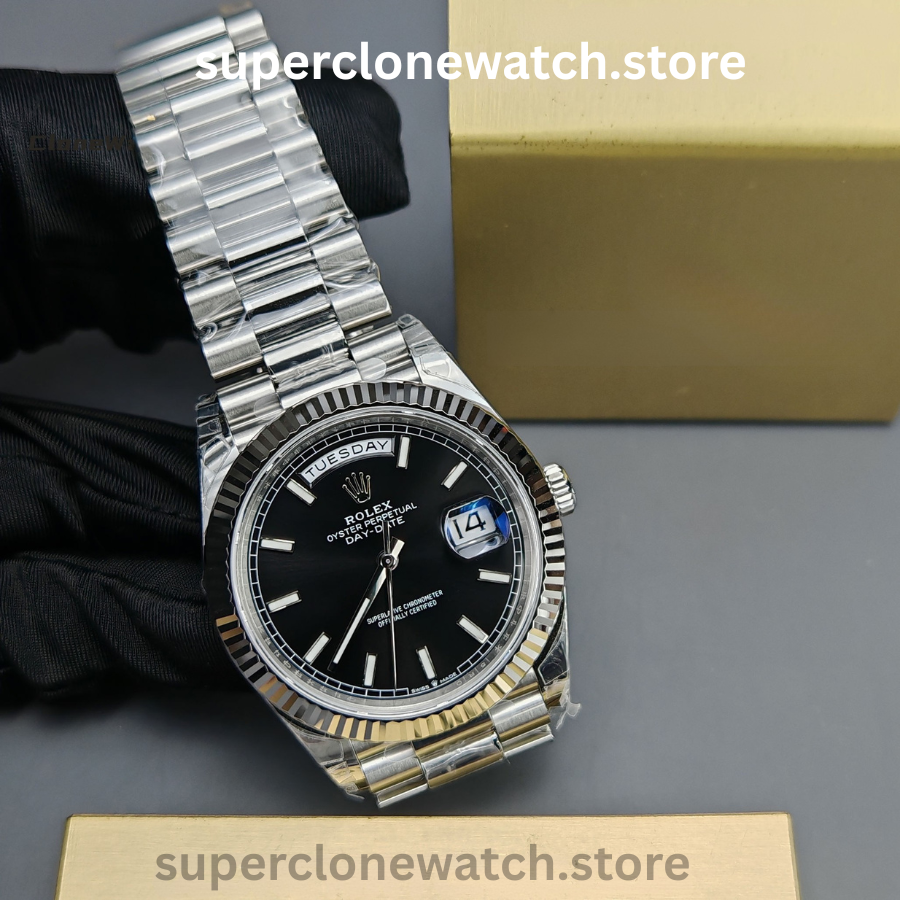 • Accurate 1:1 replication of the Rolex Day-Date Black Dial