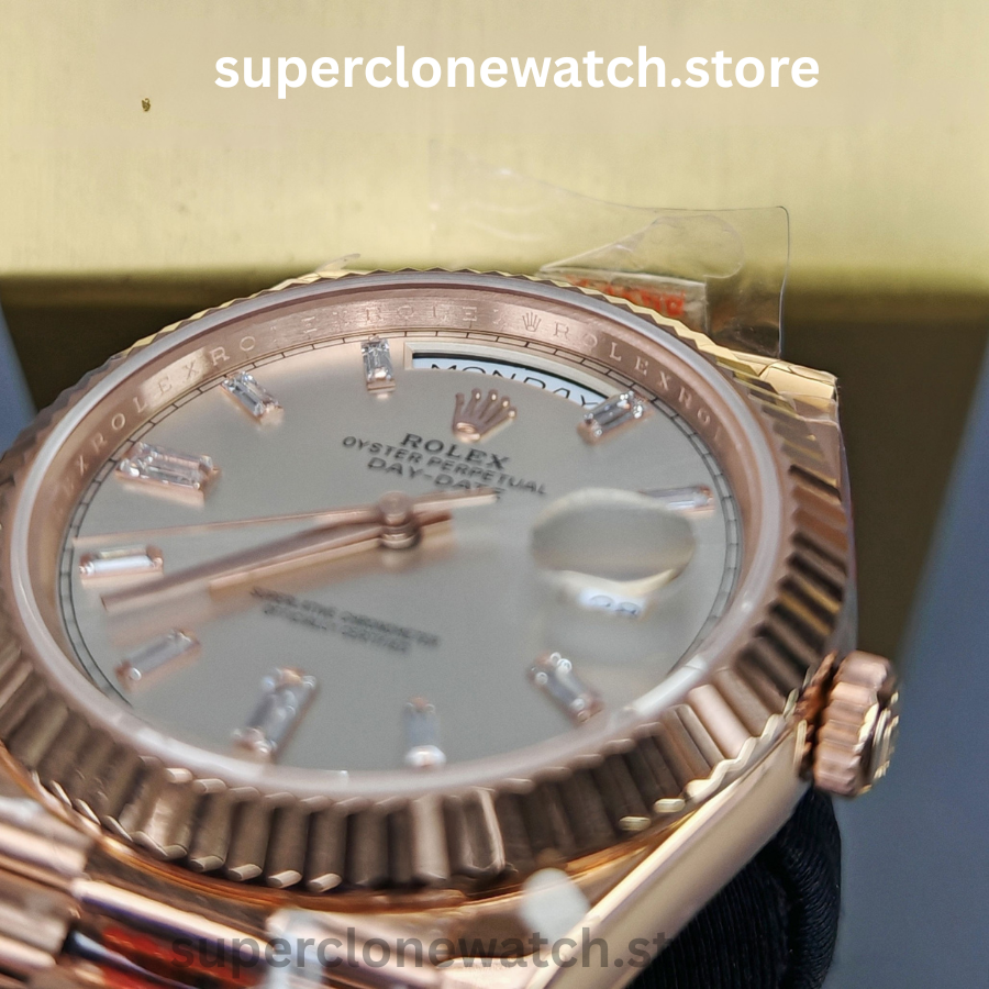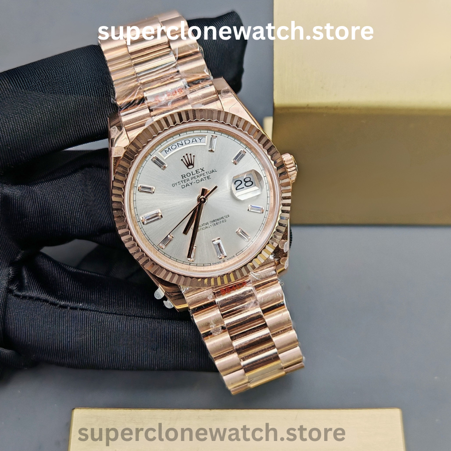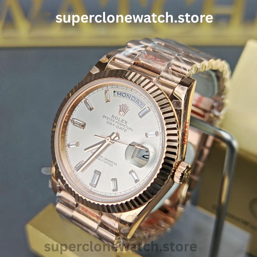 From the polished bracelet links to the finely engraved details, every component is carefully engineered to ensure an authentic 1:1 look, weight, and feel, making this Super Clone Rolex Day-Date an exceptional choice for collectors and everyday wearers alike.