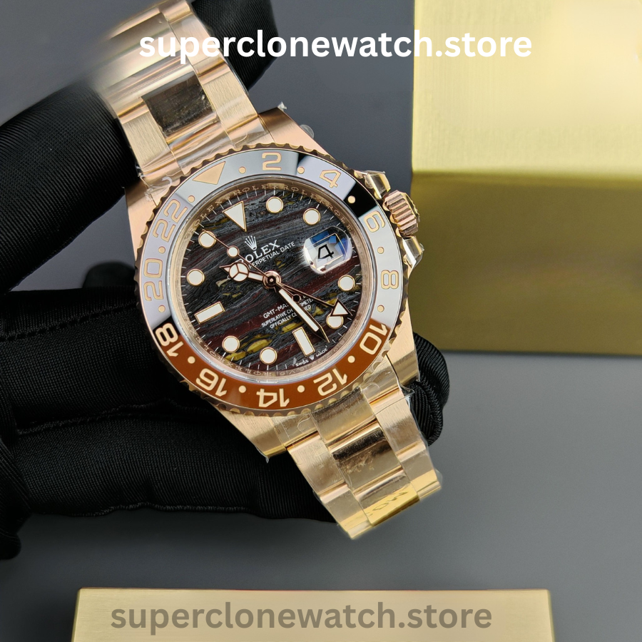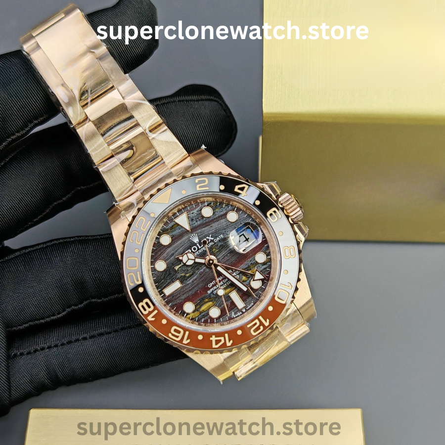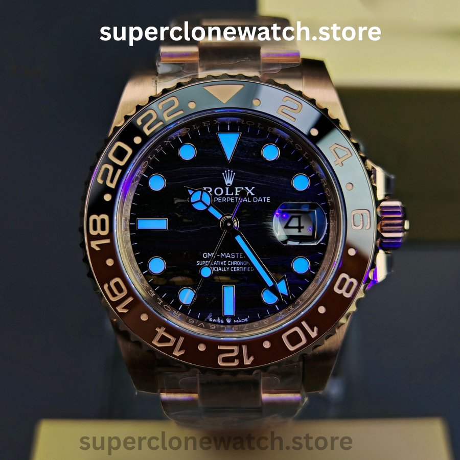 At its core, this Super Clone GMT-Master II is powered by a clone Rolex 3285 automatic movement, offering smooth timekeeping, reliable GMT functionality, and accurate performance. Finished with a scratch-resistant sapphire crystal, Cyclops magnifier, and a solid Oyster bracelet, this timepiece is ideal for both everyday wear and international travel.
