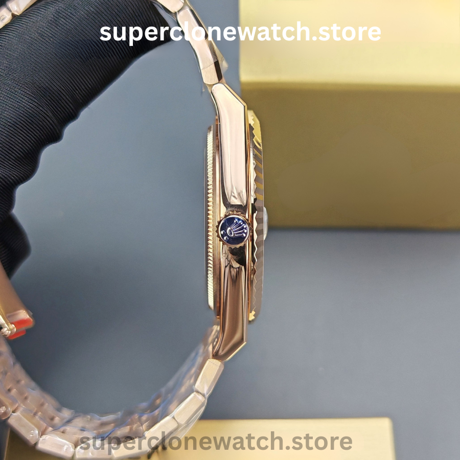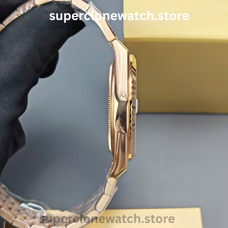 Manufactured from solid 904L stainless steel with vacuum-plated rose gold and powered by a fully functional Super Clone Rolex Caliber 3255, this model reflects the factory’s early-stage aesthetic and structural testing phase—making it a standout choice for collectors seeking limited, pre-production pieces.
