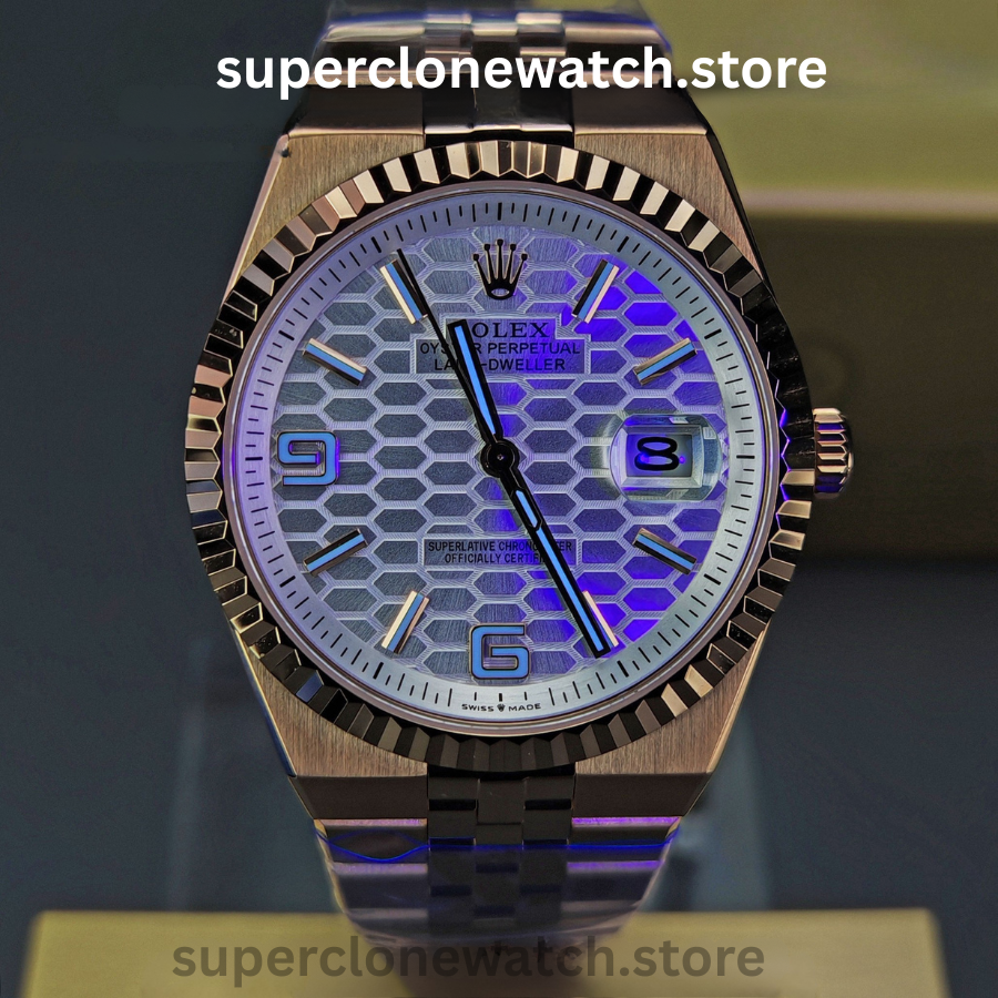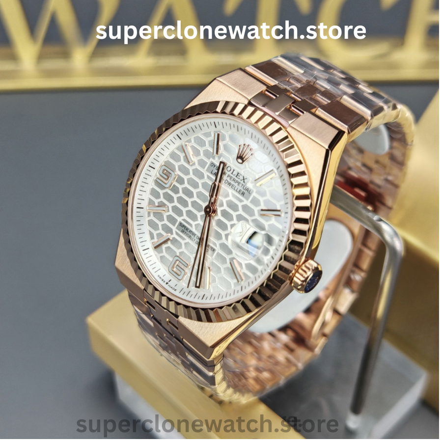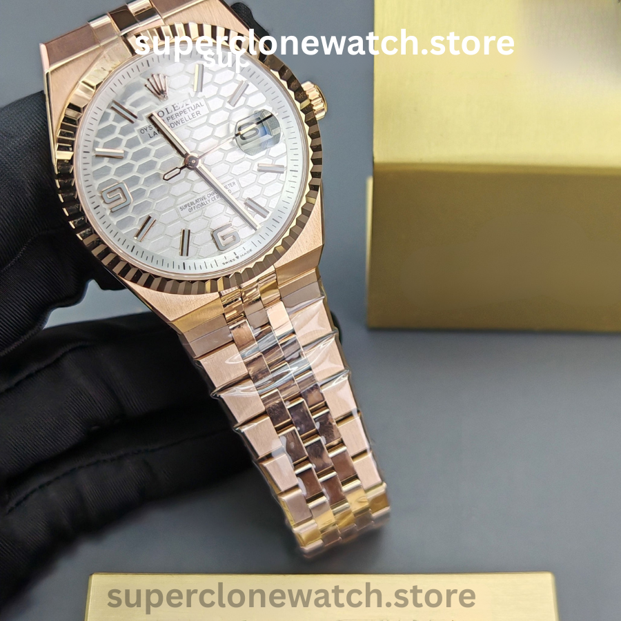 The Rolex Land-Dweller M127335-0001 Super Clone Watch is a rare factory test release positioned at the top tier of super clone watches. This early prototype introduces a striking white honeycomb 3D dial, luxurious 18K rose-gold tone finishing, and a modernized 40mm case profile, closely aligned with Rolex’s latest design language.