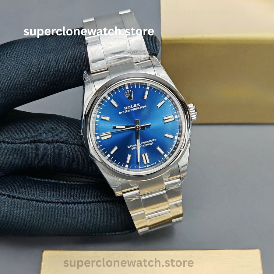 Explore one of the most refined Super Clone Watches available—the Rolex Oyster Perpetual 36mm Blue Dial (Ref. M126000-0003). Crafted with exceptional precision, this premium 1:1 super clone is engineered to replicate the original in every aspect, offering a seamless blend of elegance, durability, and mechanical performance.